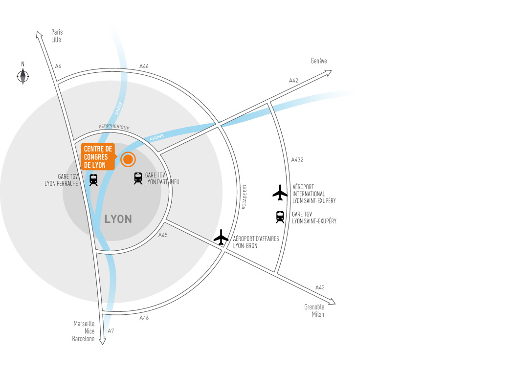 Le Centre de Congrès de Lyon est à 10 minutes de la gare TGV de Lyon Part-Dieu et à 15 minutes de la gare TGV de Lyon Perrache.